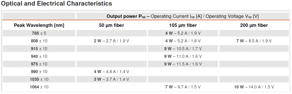 • 785 / 808 / 915 / 940 / 975 / 990 / 1030 / 1064 nm